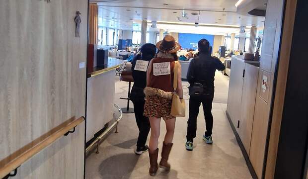 Не попавшие в Антарктиду туристы готовят пикет на лайнере SH Diana